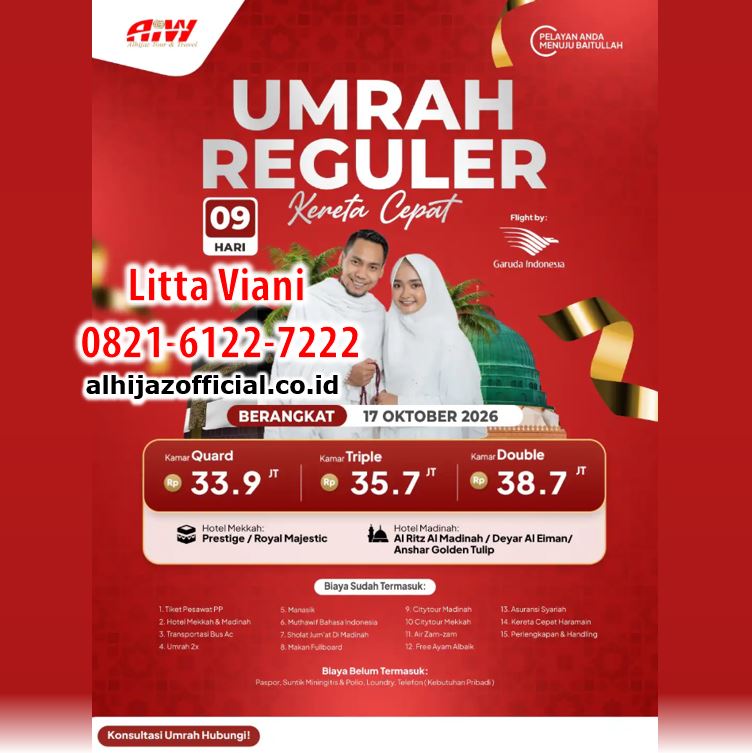 | 17 Oktober | Garuda Take Off Madinah | 9 hari | Reguler Kereta Cepat | 33,9 jt | 45 |