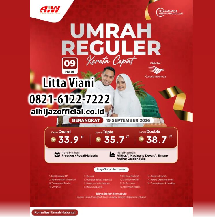 | 19 September | Garuda Take Off Madinah | 9 hari | Reguler Kereta Cepat | 33,9 jt | 45 |